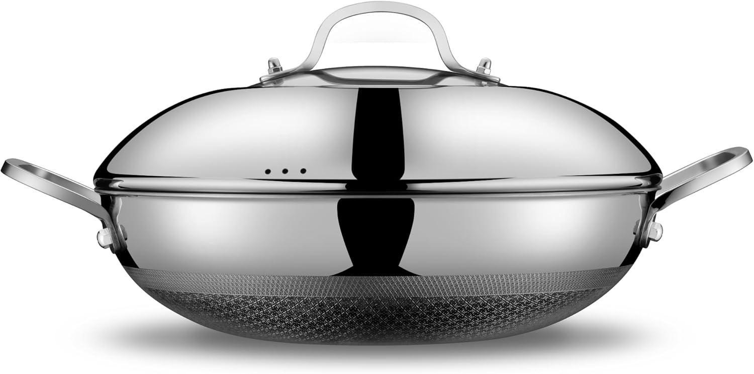 imageWok 13 Inch Hybrid Woks ampamp Stirfry Pans Nonstick Non Toxic Stainless Steel Wok Pan with Lid Dishwasher Induction Oven Broiler Safe PFOA Free Cookware Non Stick13 Inch